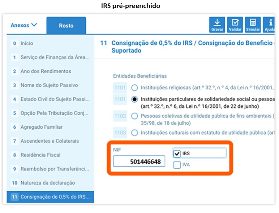 Como em anos anteriores, é possível os contribuintes doarem 0,5%, a uma instituição de solidariedade social, do valor que têm que pagar ao Estado.